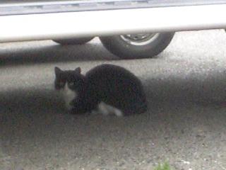 買い物帰りの夕方、駐車場にてまたまたにゃんちゃん この子は滅多に見かけない子なので、誰かに飼われてるのかもしれない。 逃げられないように、遠くからパシャリと。