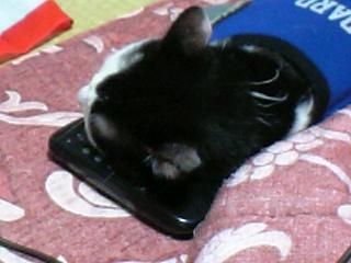 何かを枕にしないと落ち着いて寝ることができないようで、 常に何かを頭の下にひきます。 大抵の場合は人の腕や座布団なんやけど・・・ どうやら本日は床に置いてあったテレビのリモコンを枕にした模様。 珍しかったのでついついと。