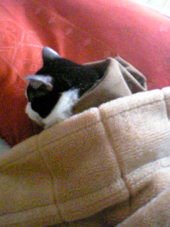 我が家のニャンコ様、チビ♂ は朝にと~っても弱いにゃんこです。 今朝も、毛布の中でうにゃうにゃ・・・。
