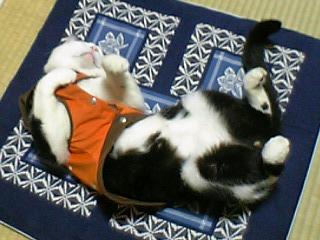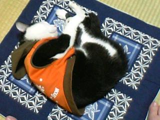 お気に入りの座布団に乗っかって熟睡中です。