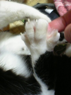 何故か足の肉球をサワサワすると足の指を全開にします。